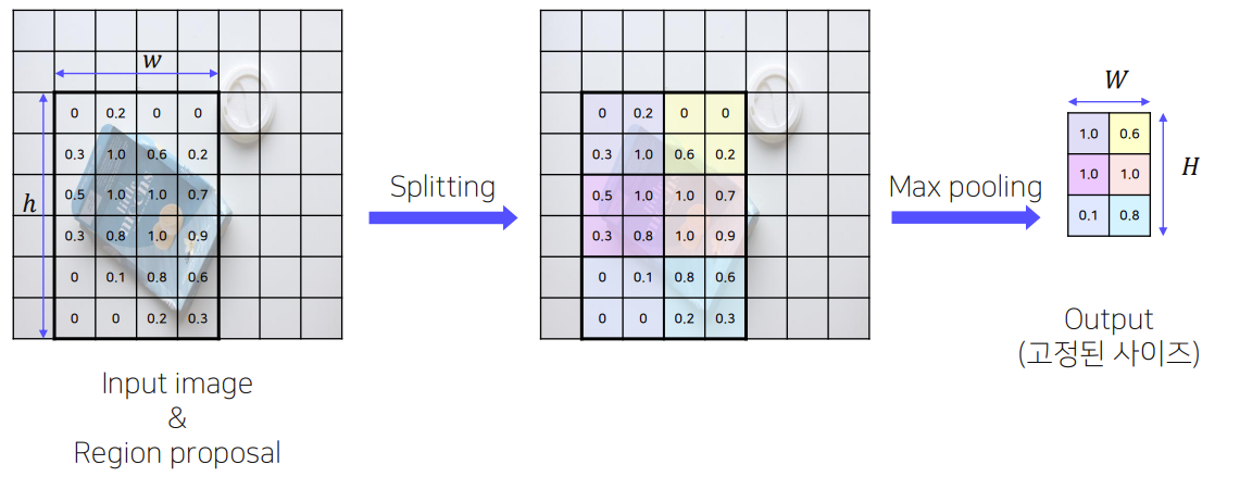 3) ROI pooling을 통해 일정한 크기의 feature가 추출