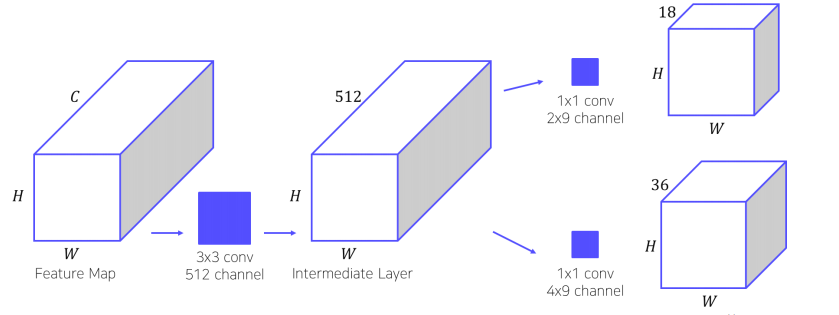 -> 4(width,height, 중심좌표) x 9(ancorbox의 수)개의 채널생성