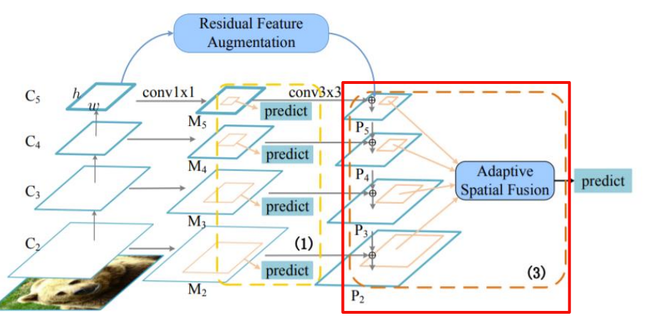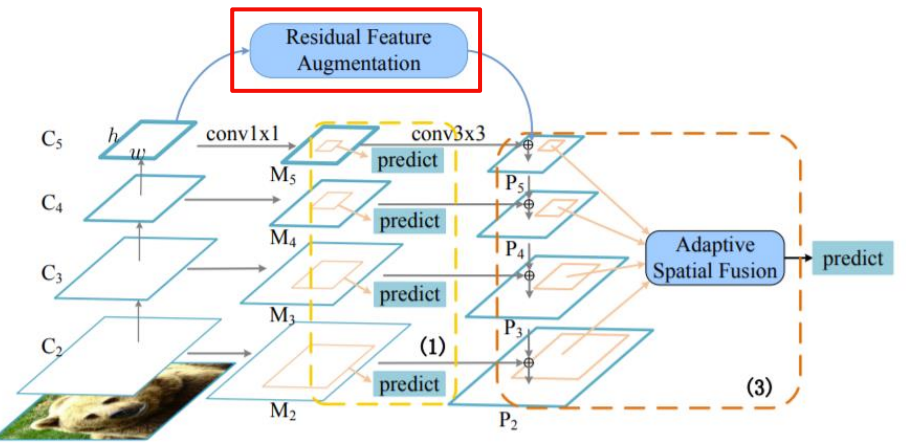Residual Feature Augmentation의 과정에서 C5를 이용하여 여러개 scale의 output을 만들고 Adaptive Spatial Fusion을 하게된다