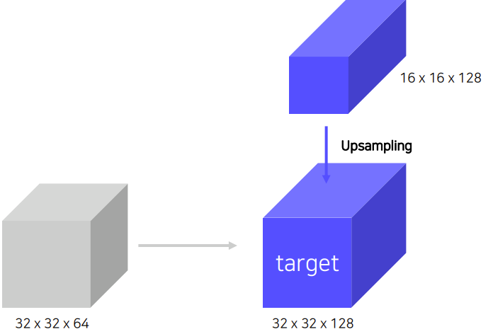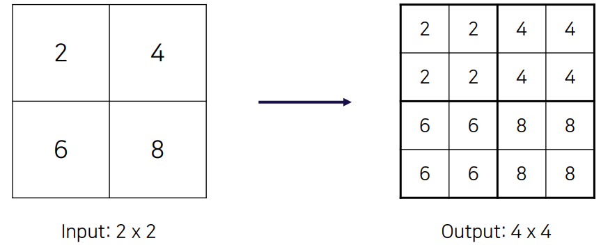 여기서는 Nearest Neighbor Upsampling을 사용했다