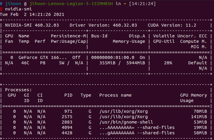 7. nvidia-smi로 드라이버 확인 및 cuda version 확인