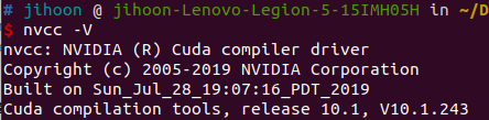이렇게 우측 상단을 보시면 CUDA Version: 11.2이라고 되어있지만 우리는 CUDA Version 10.1 를 사용중입니다.