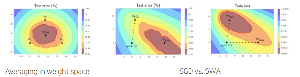 - 일정한 step마다 weight를 업데이트시키는 SGD와 달리, 일정 주기마다 weight를 평균 내는 방법
