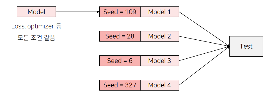 - 동일한 아키텍처이지만 서로 다른 local minima에 빠진 신경망을 앙상블 하는 방법