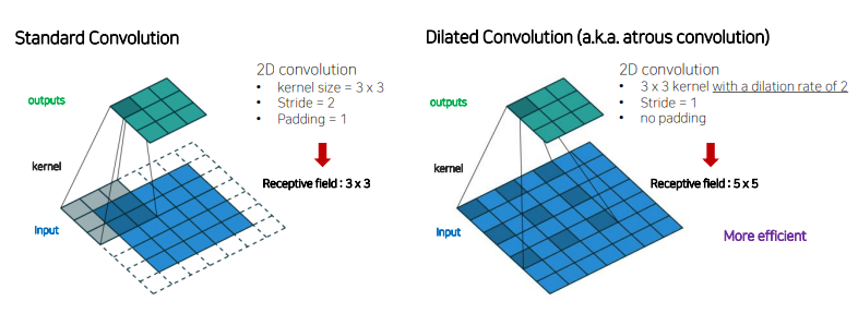 이미지의 크기는 많이 줄이지 않고 파라미터수는 유지하고 receptive field는 넓히는 방법은 없을까? 에서 시작된 연구