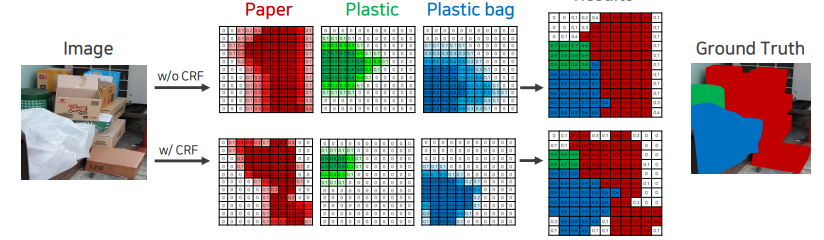 CRF를 사용하면 할 수록 디테일함이 살아나는 결과를 확인함