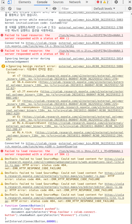 코랩은 학습 도중에 세션이 끊어지는 현상이 발생합니다.