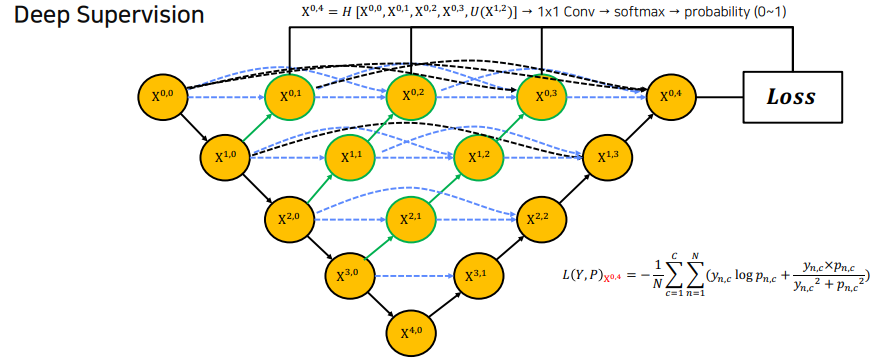 - deep supervision ( 모든 loss를 평균내서 사용 )