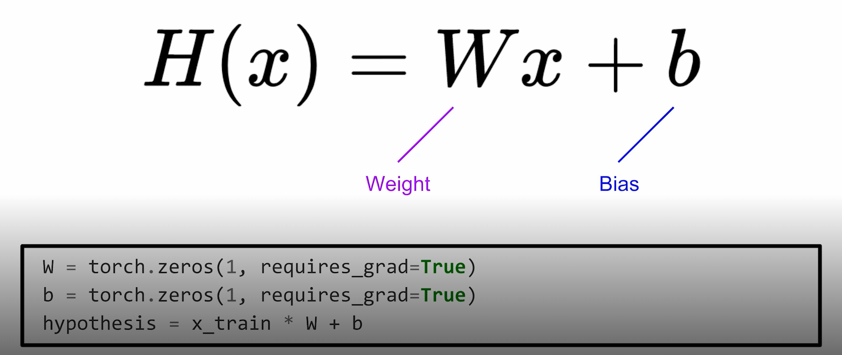 cost = torch.mean((hypothesis - y_train) ** 2)