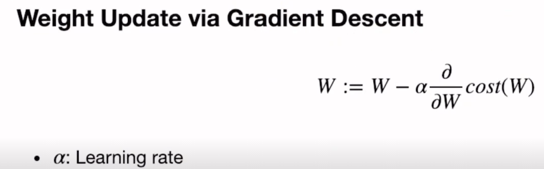 # gradient를 사용하여 cost를 mimize하는 방향으로 W와 b를 업데이트함