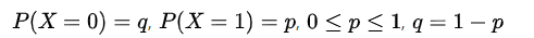 - (매 시행마다 오직 두 가지의 가능한 결과만 일어난다고 할 때, 이러한 실험을 1회 시행하여 일어난 두 가지 결과에 의해 그 값이 각각 0과 1로 결정되는 확률변수 X에 대해서