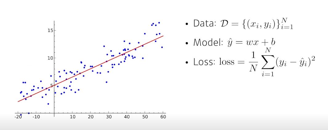 위와 같은 데이터가 존재할 때, loss function을 w로 편미분 한 값을 현재 w에 적절한값(스텝사이즈, lr)을 곱해서 빼준다.