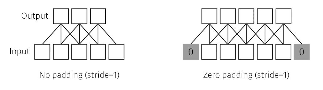 -> 두개의 사이즈를 같게하려면 가장자리도 filter로 찍어줘야하는데 가장자리는 output을 찍을 수 없기때문에 padding을 사용한다.