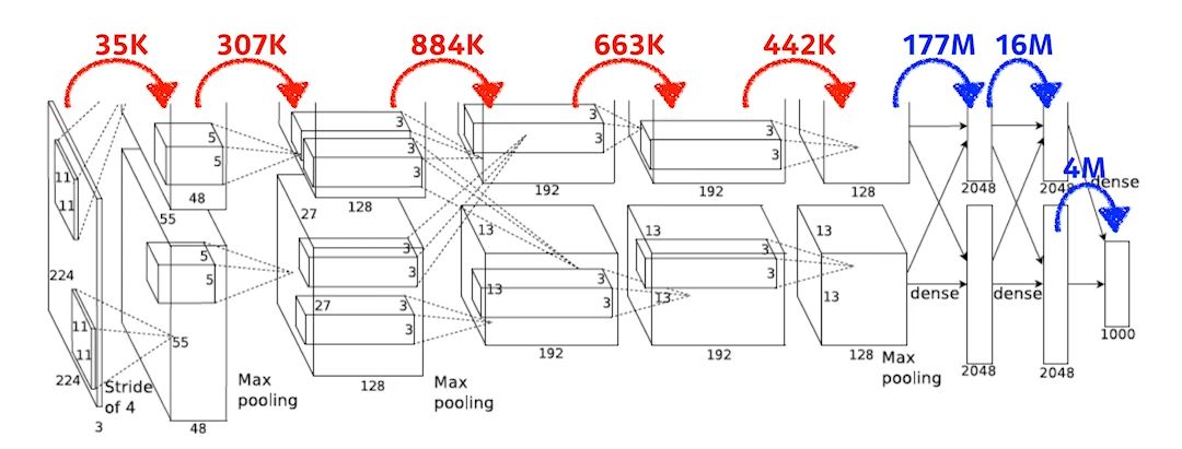 Dens Layer에서는 파라미터수가 많이 필요하다.