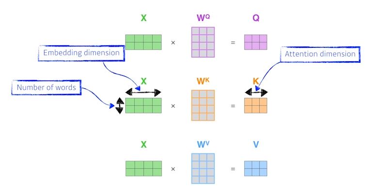 - 원래 주어진 임베딩단어의 차원이 100차원이고 10개의 head를 사용한다면 이를 10으로 나누고 10차원 짜리 입력을 가지고 K,Q,V vector를 만든다*