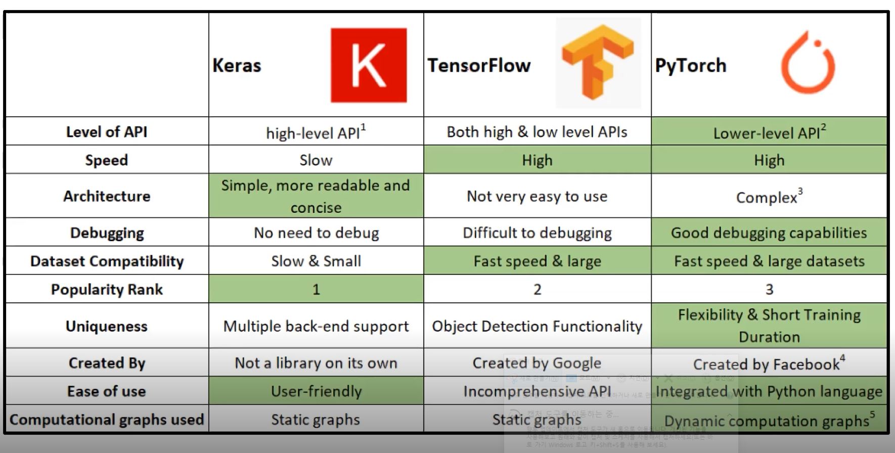 많은 딥러닝 프레임워크가 있었지만 Facebook의 PyTorch와 Google의 Tensorflow가 리더로 자리잡았다.