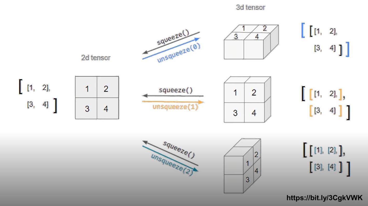 - unsqueeze: 차원의 개수가 1인 차원을 추가