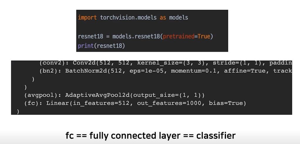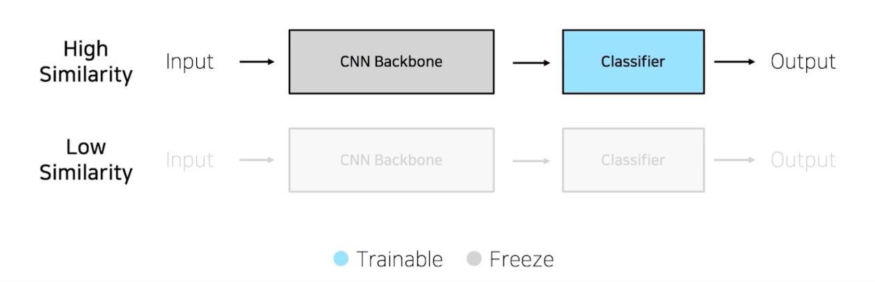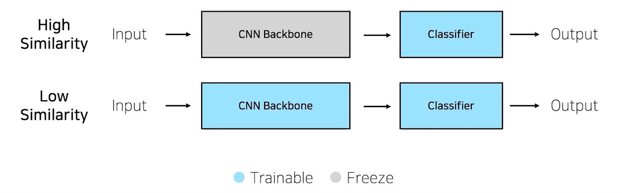 pretrained된 모델과 유사한 작업을 할 때는 classifier만 학습해서 사용한다