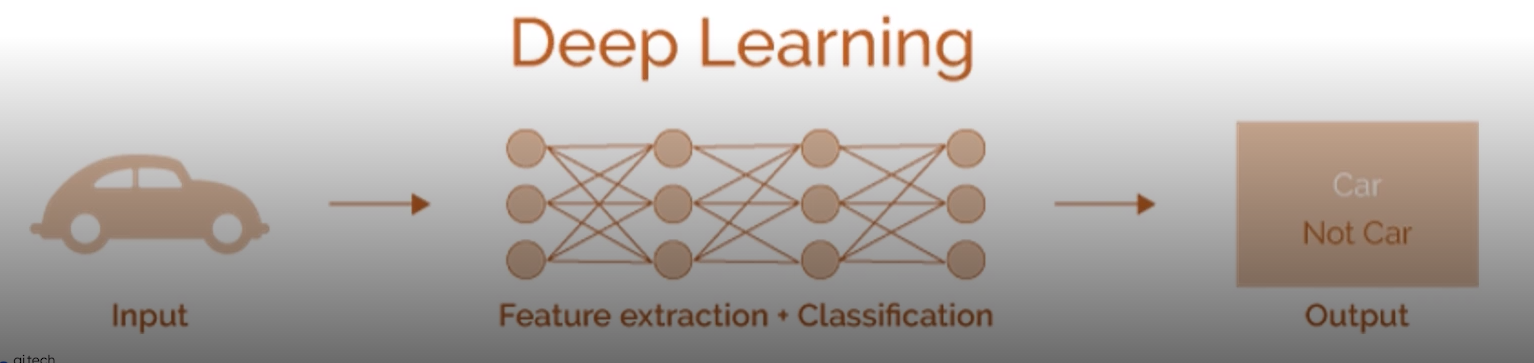 - MachineLearning: 과거의 머신러닝으로 사람이 이미지에대해 특징을 추출하여 식을 만들었고, 작은 규모의 classification을 했다.