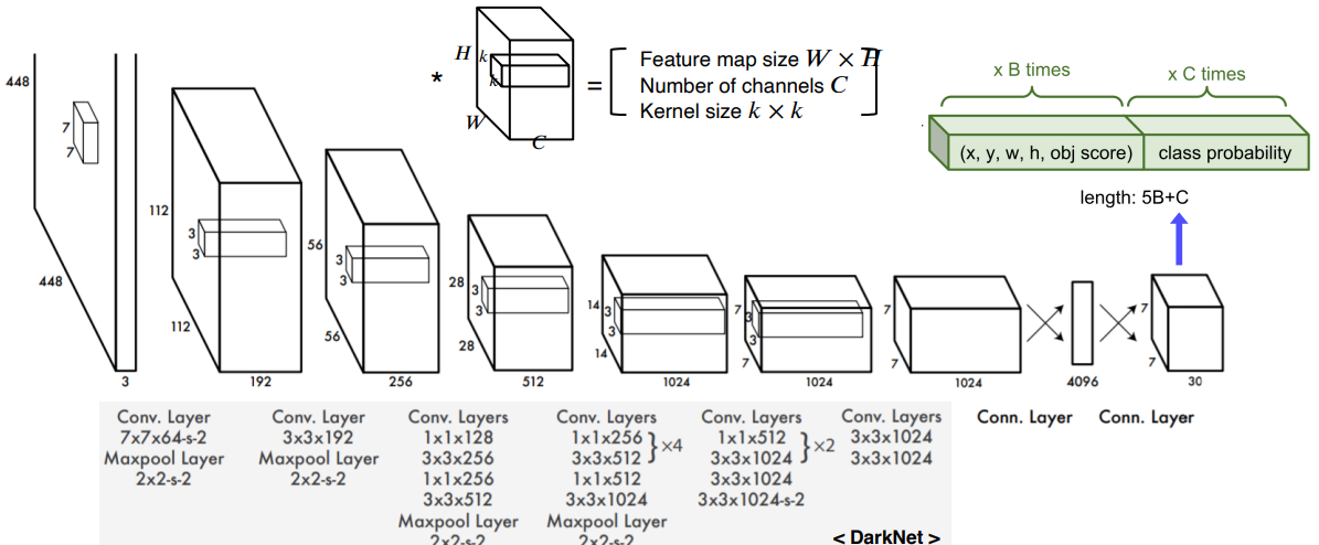 - 그리드를 SxS로 나눴는데 여기서는 7x7개의 그리드로 나눴기 때문에 해상도가 7x7이다.
