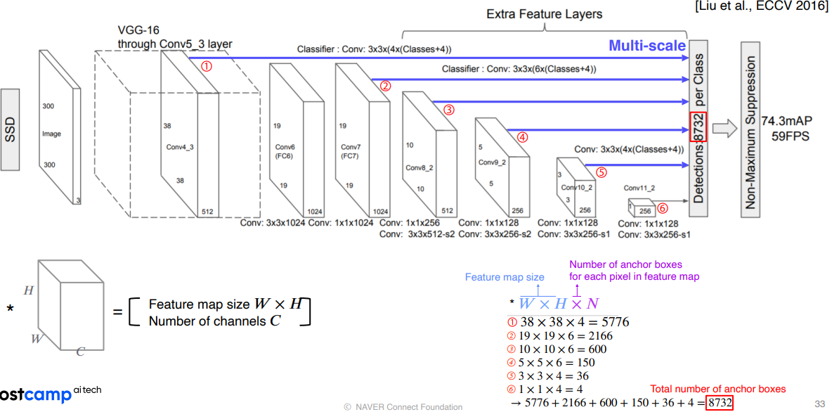 - 멀티 스케일 오브젝트 디텍션을 더 잘 처리하기위해 중간 피쳐맵을 각 해상도에 적절한 바운딩박스를 추출할 수 있도록 만들었다.