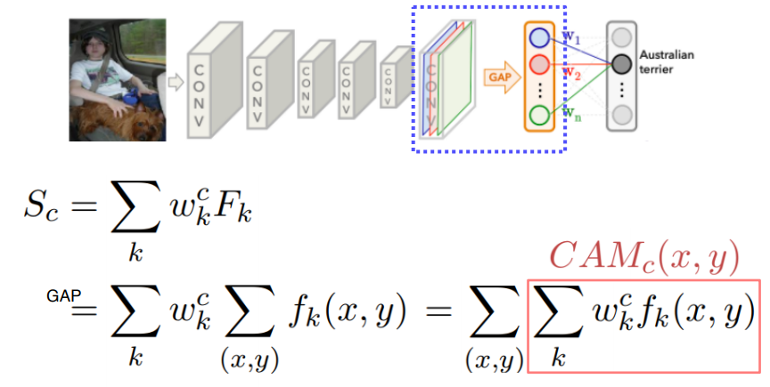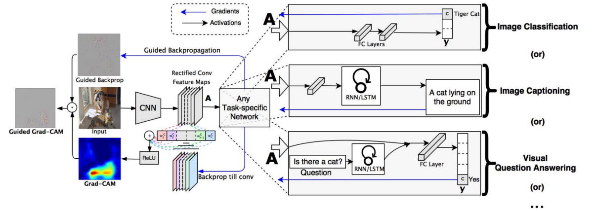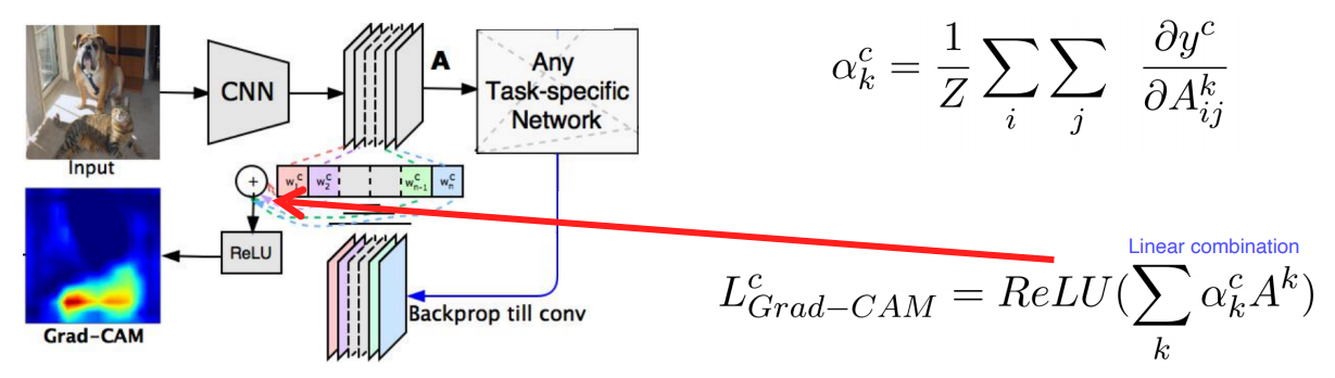 - 모든 아키텍처가 이렇게 할 수 없기 때문에 구조변경도없고, 재학습도없이 사용할 수 있는 Grad-CAM이 개발됨