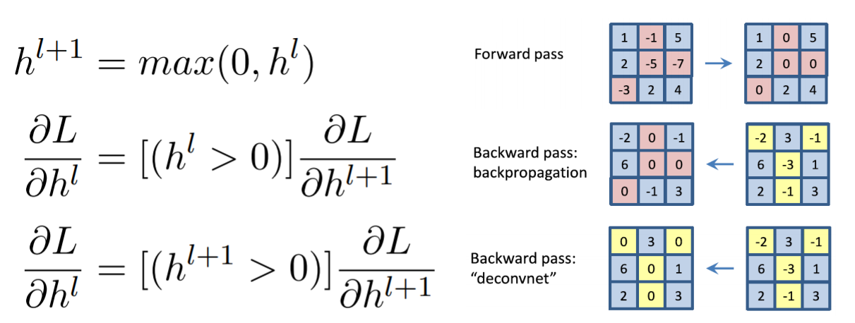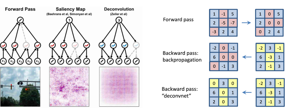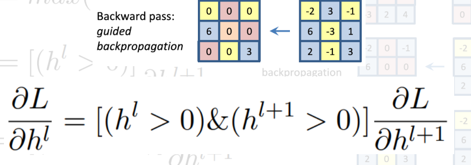 이런 deconv의 방식과 forward의 위치를 저장해놨다가 backward할때 해당 위치값을 0으로 만드는 방식에서 새로운 아이디어를 만들어내게된다.
